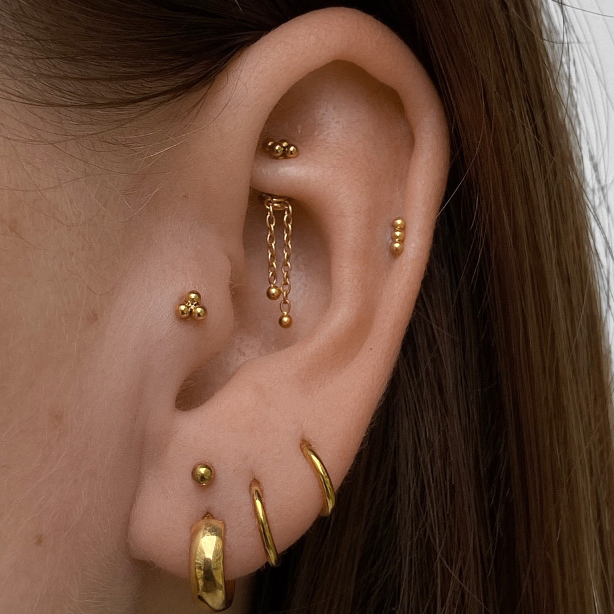 14k Gold 3 Bead Cluster